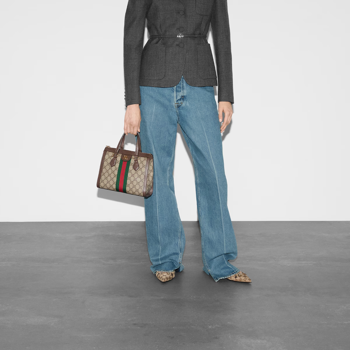 〔オフィディア〕ラインの新作スモール トップハンドル トートバッグ。GGスプリーム に、グリーン/レッド/グリーンのウェブ ストライプがはめ込まれ、1970年代のアーカイブから取り入れたダブルGが、レザーのタブ ディテールとジッパープルのトップに飾られています。取り外し可能なショルダーストラップ付きで、様々なスタイルでご使用いただけます。 (一部画像と実製品に相違がございます)