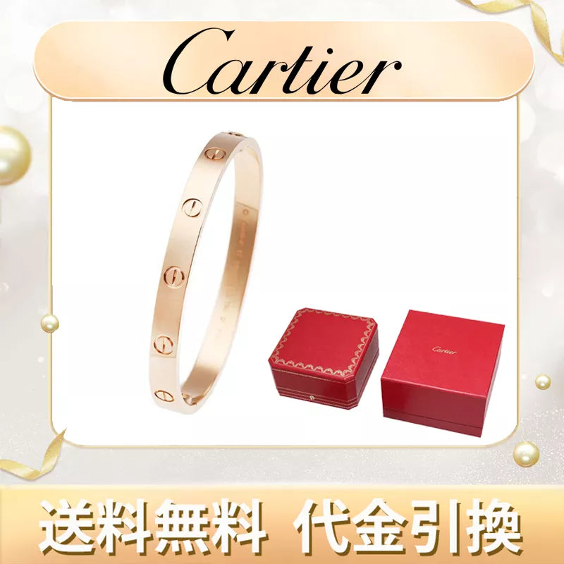 フランスの名門ジュエラー「Cartier」 そのジュエリーは、創造性と卓越性に彩られ、常に斬新なスタイルを提案しながら揺るぎないスタイルを確立し、 各時代を風靡した王侯貴族やセレブたちを魅了し今なお愛され続けています。 伝説的なカップルの情熱的な愛を封じ込めたラブコレクション。 グラフィカルなビスがあしらわれたバングルは、離れがたい愛に捧げられます。 ピンクゴールドが柔らかな印象です